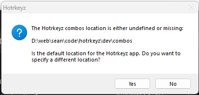 Pressing [Yes] will prompt you to select the location of a existing combos