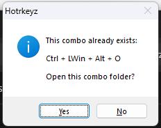 If the defined combo already exists, you will be prompted that the combo is